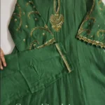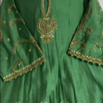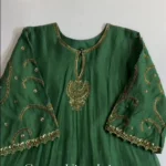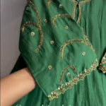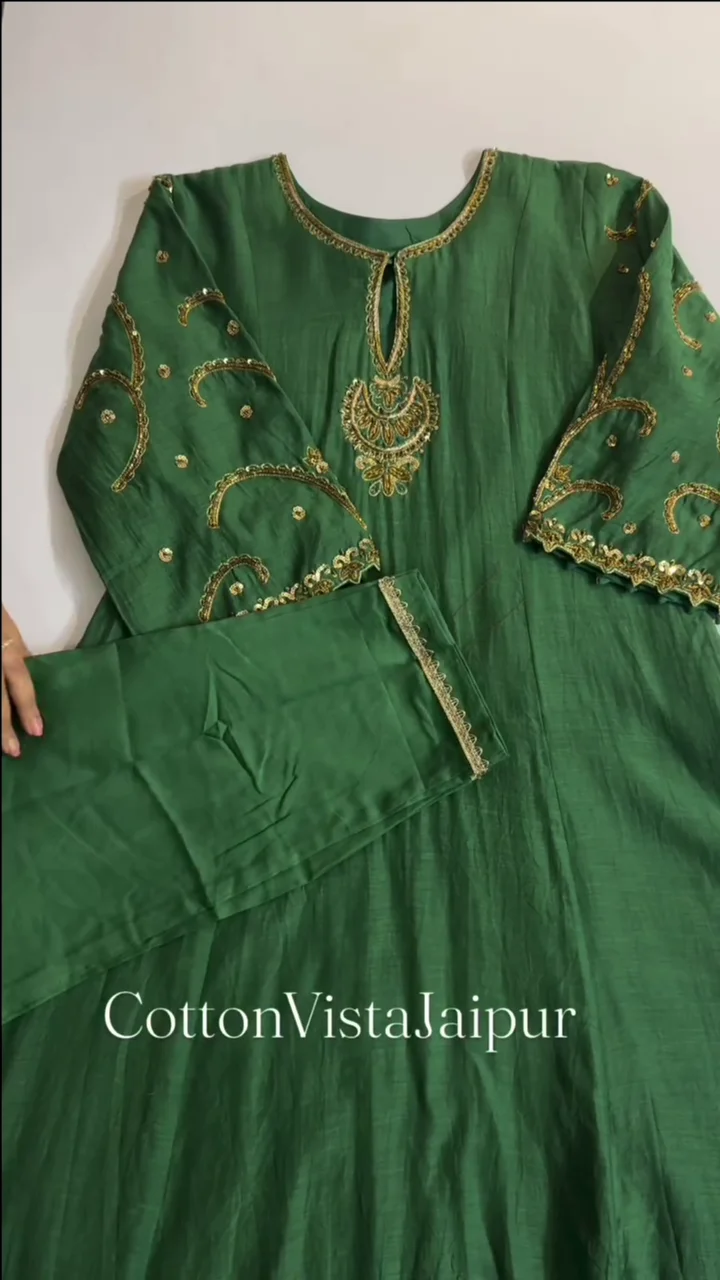 •Work/Detailing: Intricate hand embroidery with paisley motif on the neckline, highlighted with colorful thread and beadwork; delicate charm embellishments on the neck and sleeves for a festive finish