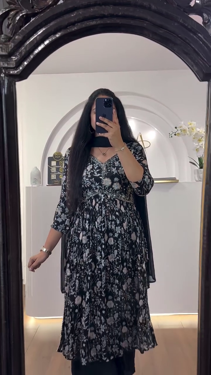 + Free ShippingBlack and white floral print a-line dress