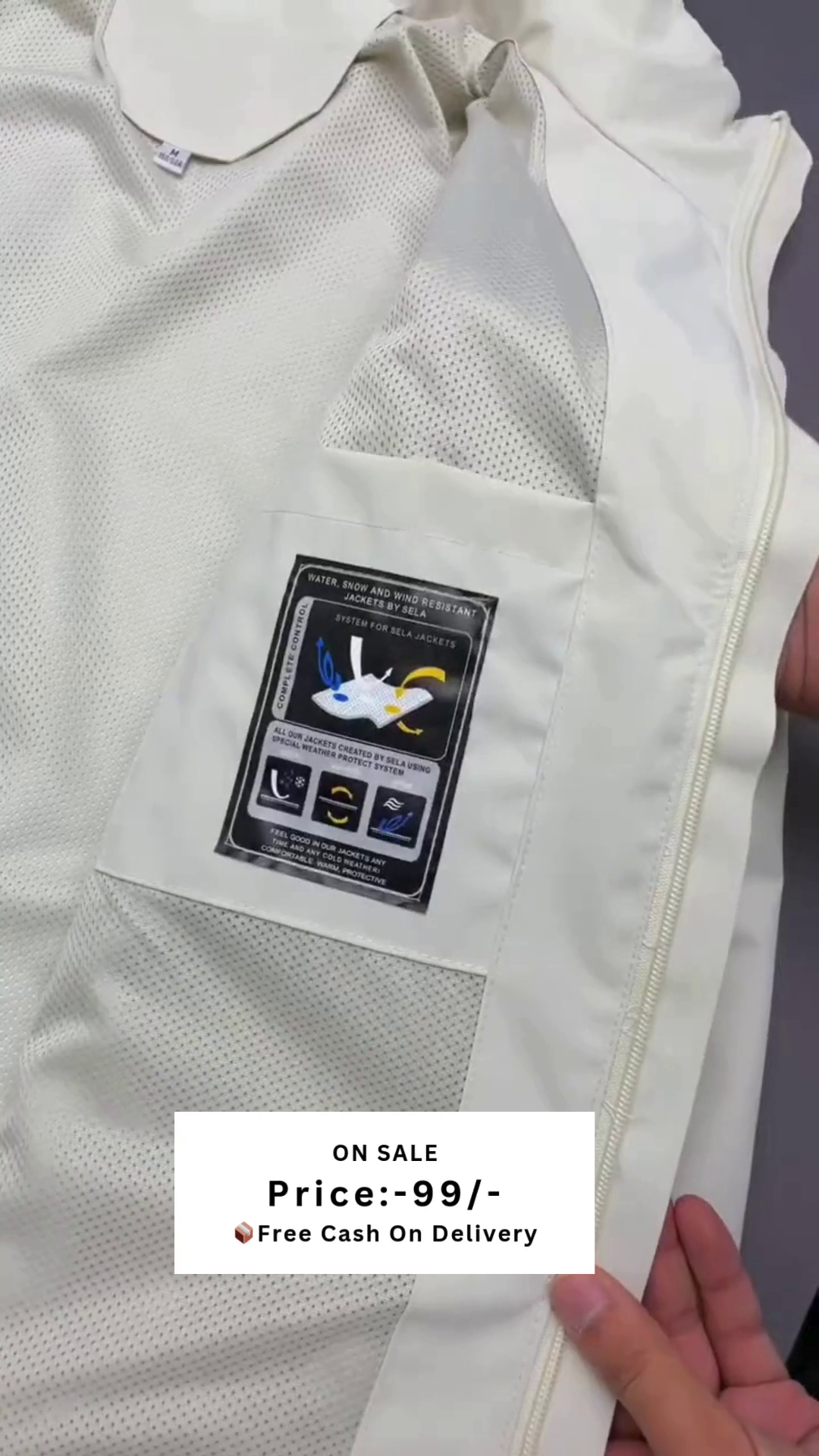 Product Details – White solid tailored jacket, has a hooded, 2 pockets ,has a zip closure, long sleeves, straight hemline, mesh lining