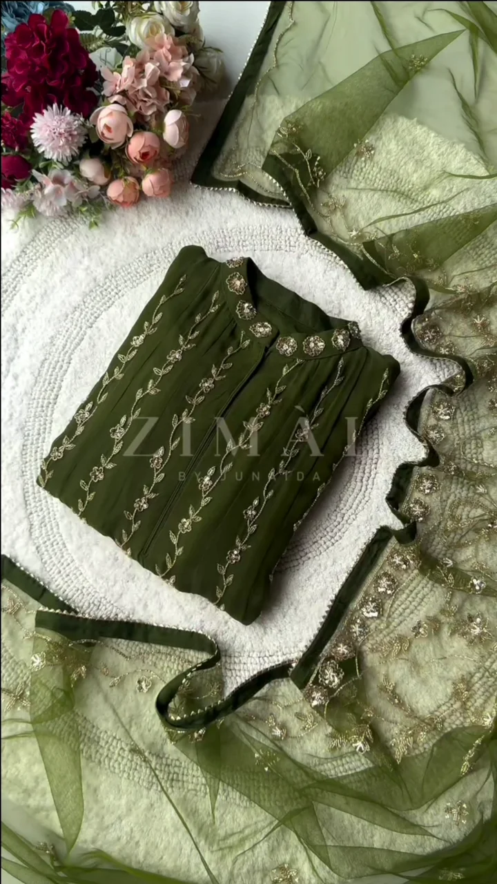 Premium heavy hand work georgette anarkali with georgette hand work bottom and net heavy hand work full size dupatta.