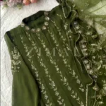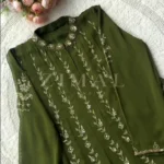 – Mehendi Green two-piece Suit in Mul chanderi fabric