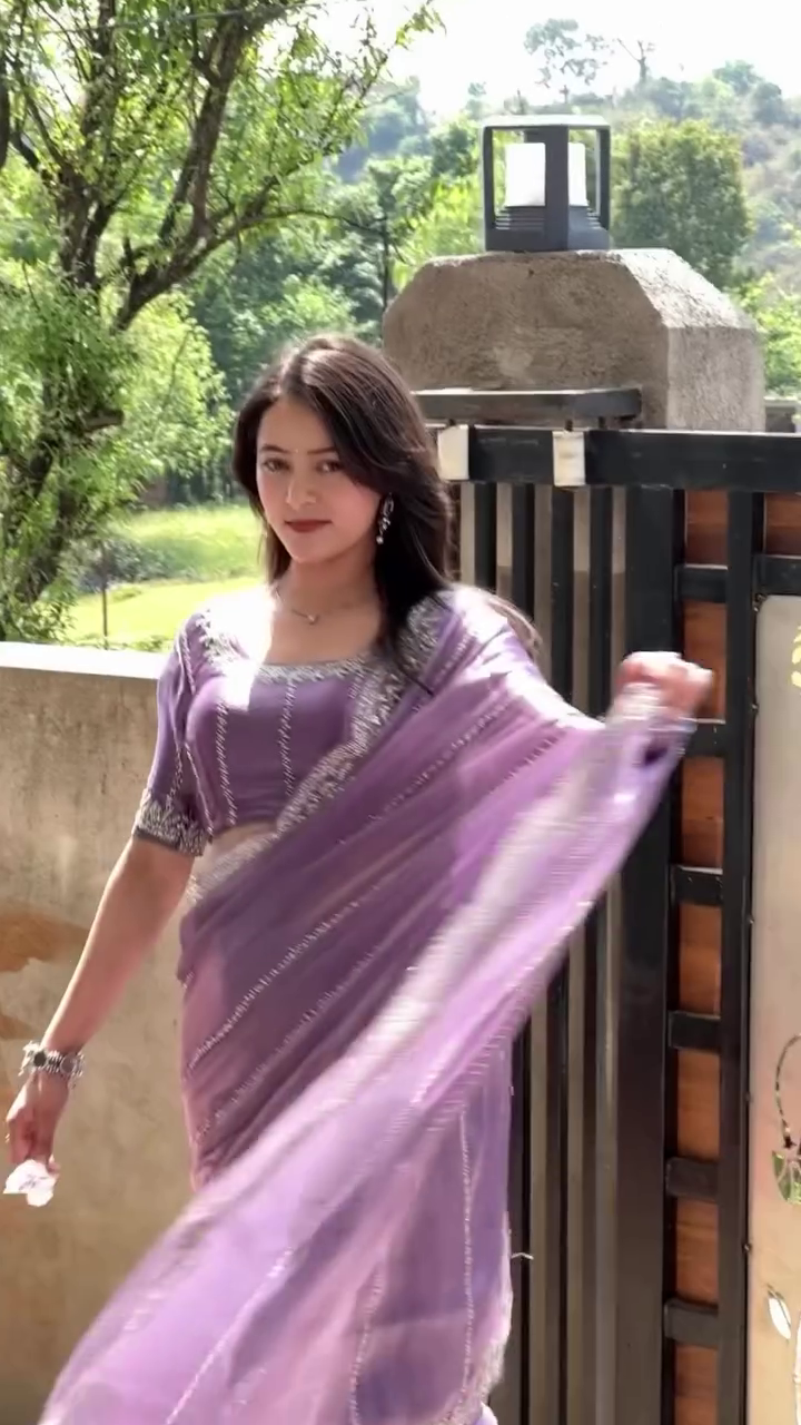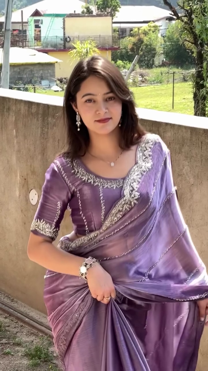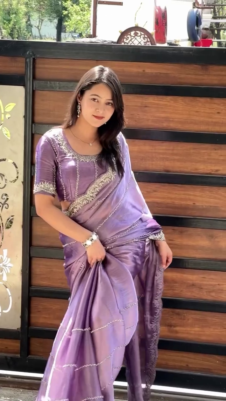 Saree For Women’s And Girls Soft Jimmy Chu With Multi Thread Sequence fabric Saree With Full-Stitched Blouse