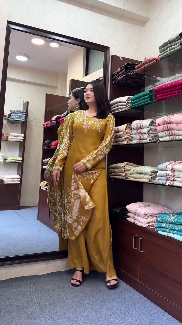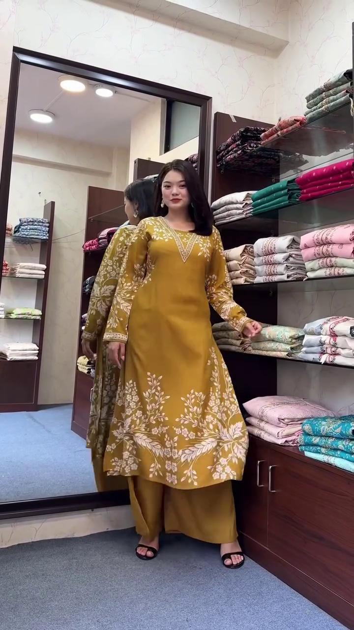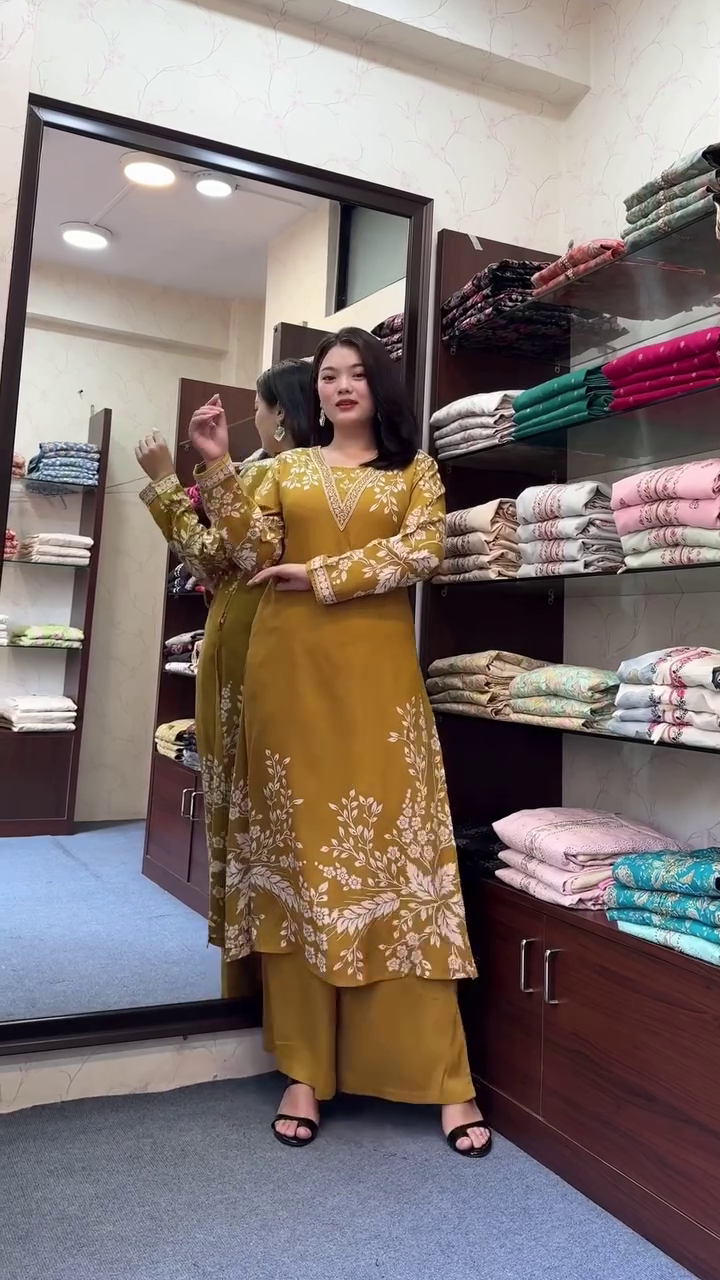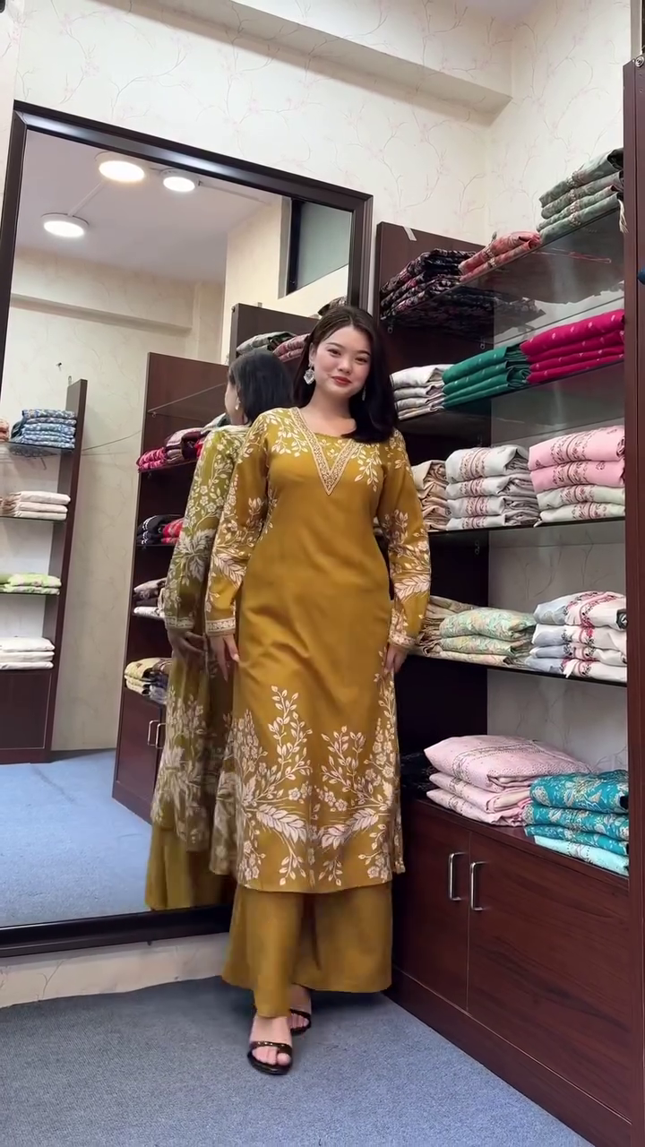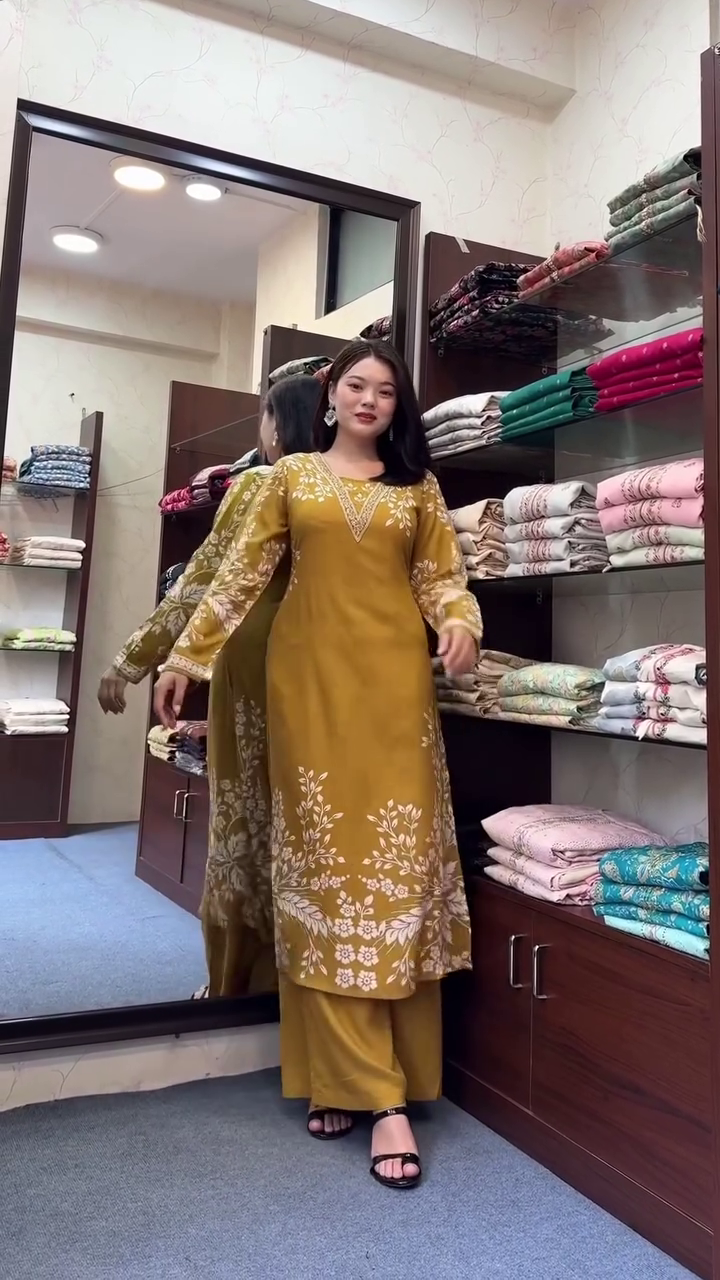 + Free ShippingMustard yellow printed Kurta with Palazzos