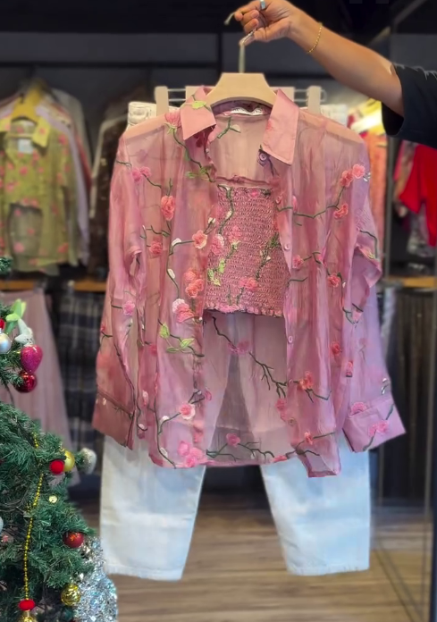 Ye blush pink floral co-ord set soft, elegant aur trendy look deta hai 🌸