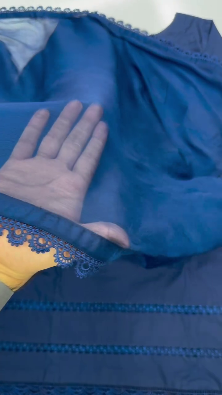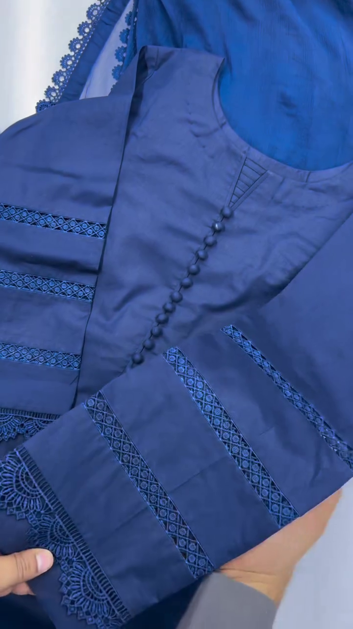 Package Includes: 1 unstitched suit piece, 1 bottom fabric piece, and 1 elegant dupatta